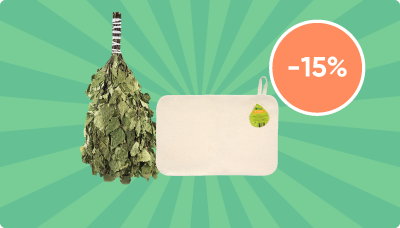 Скидка 15% на набор коврик + веник для бани